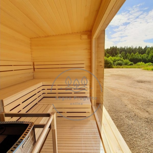 Sauna Finlandese MODERNA da esterni con zona relax, MODELLO SAUNA