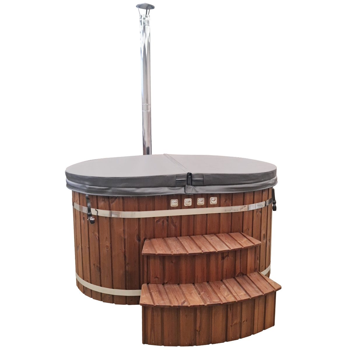 TOPAZ Minipiscina Jacuzzi da Esterno – Ø225×225 cm – Modello Lusso con Stufa a Legna Integrata in Acciaio Inox 316
