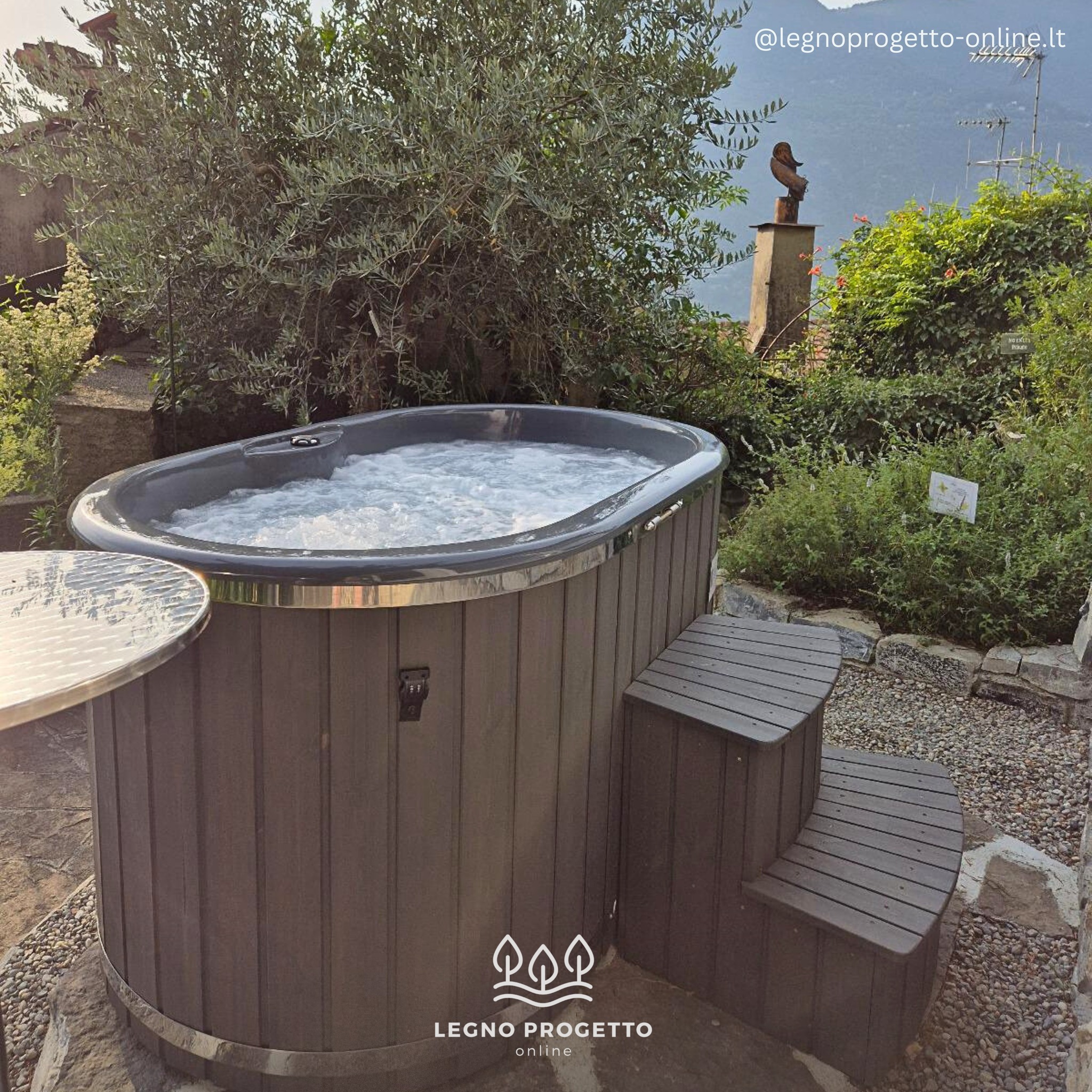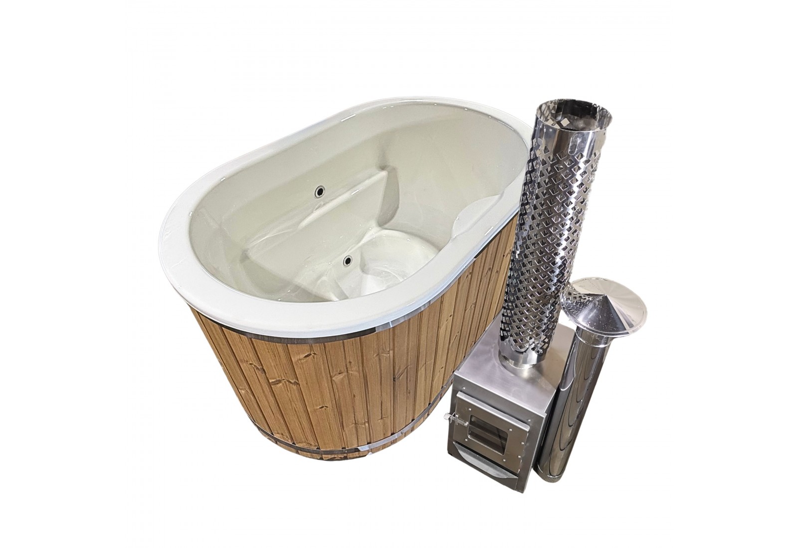 Vasca Ofuro ONYX Ovale per Due Persone, con stufa a legna esterno