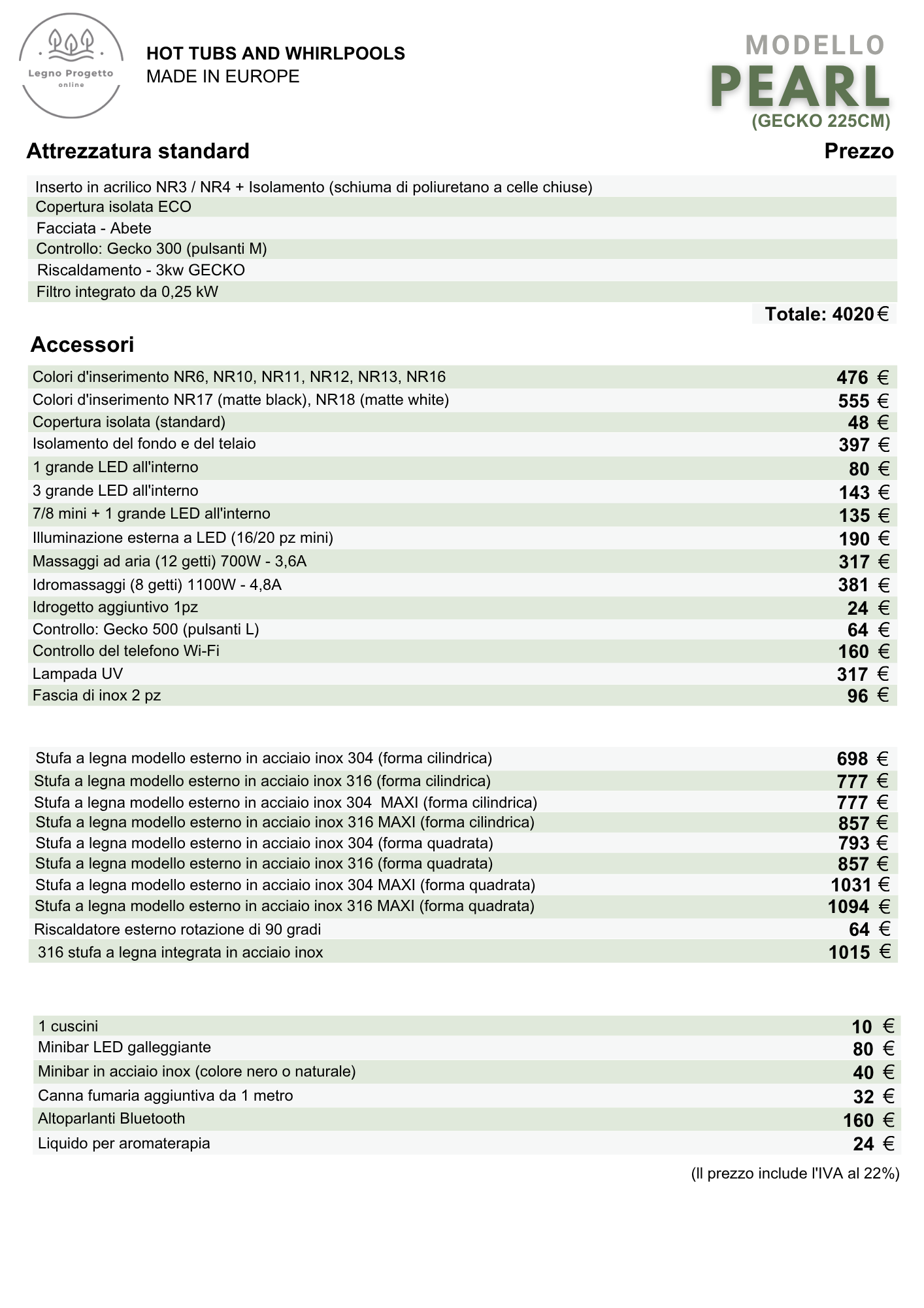 - IVA: Inclusa nel prezzo.