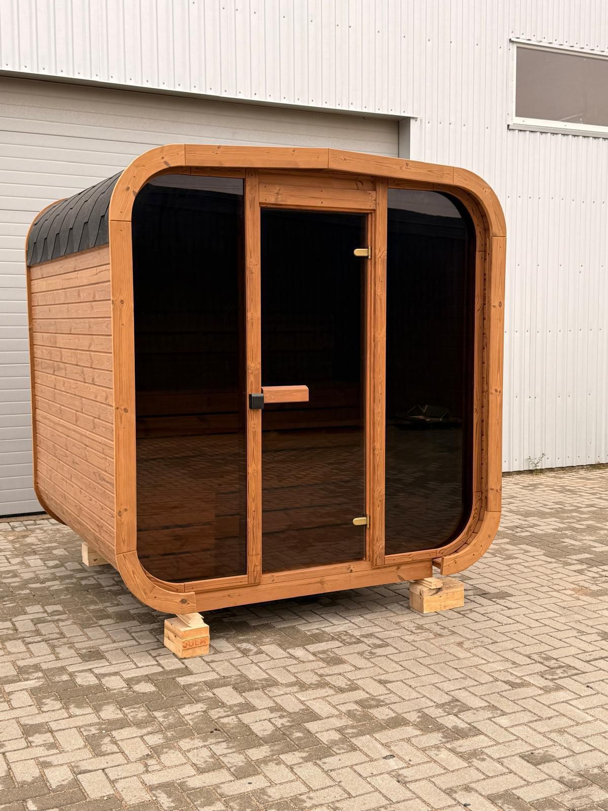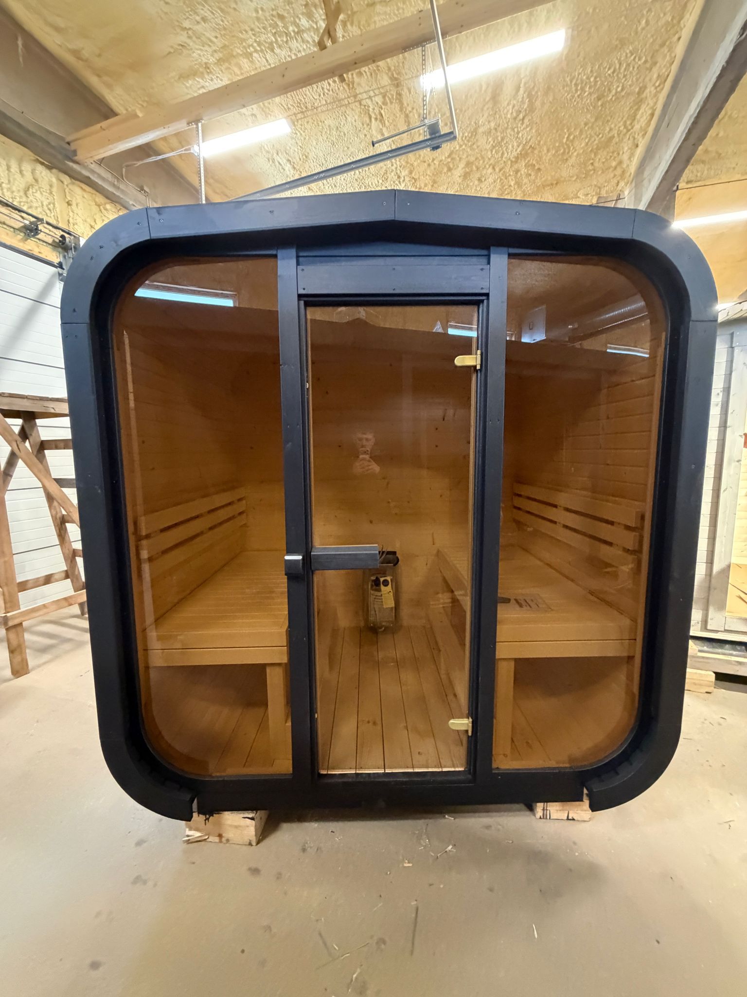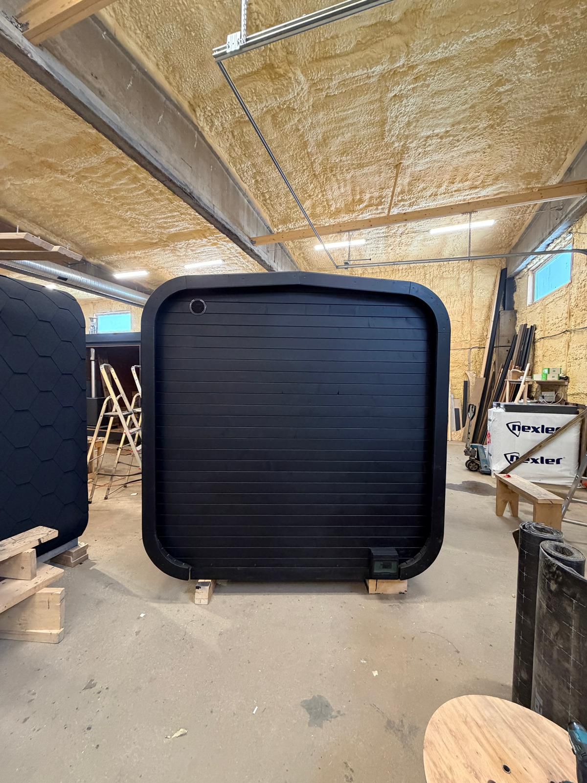 La struttura cubica offre ampie dimensioni interne, garantendo un’esperienza di sauna confortevole, rigenerante e armoniosa in ogni stagione.