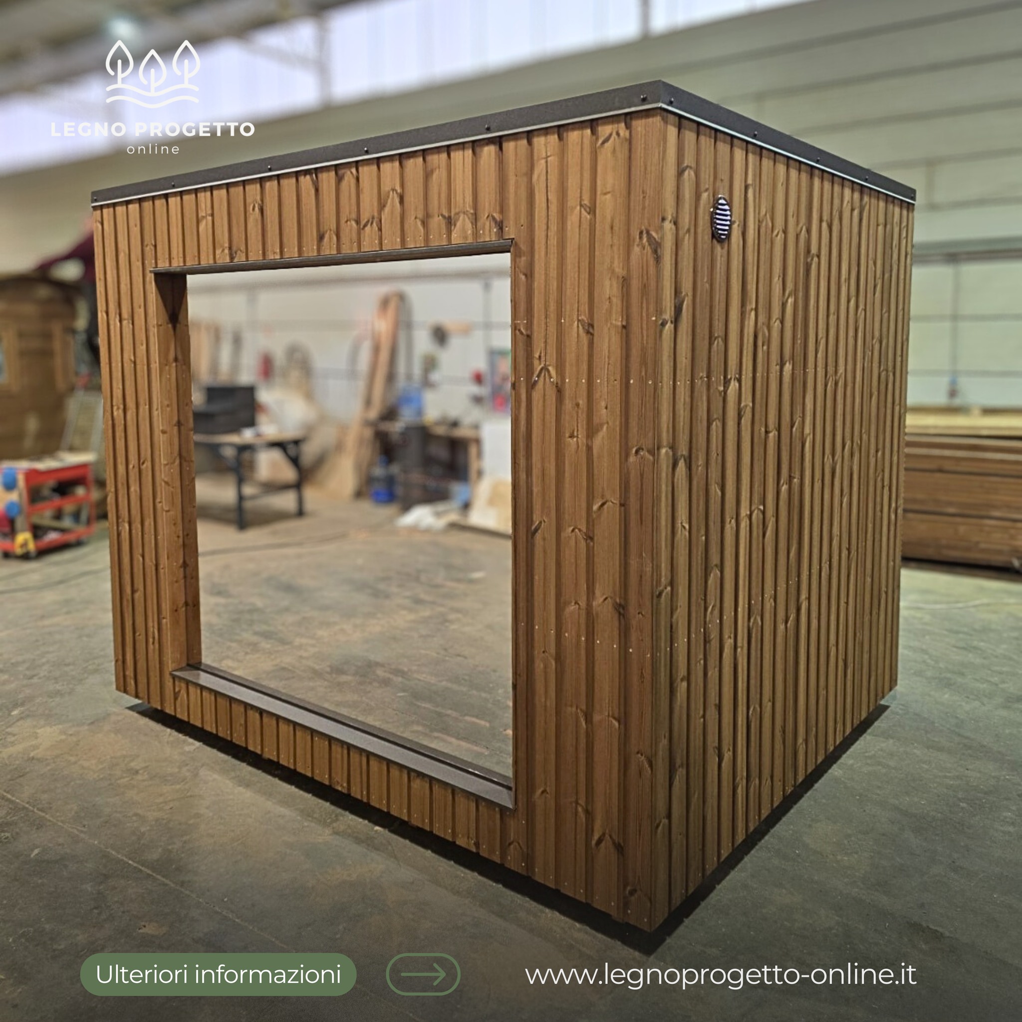 Struttura isolata, materiali premium e vetrate panoramiche la rendono ideale per giardini, B&B, glamping e spa private.