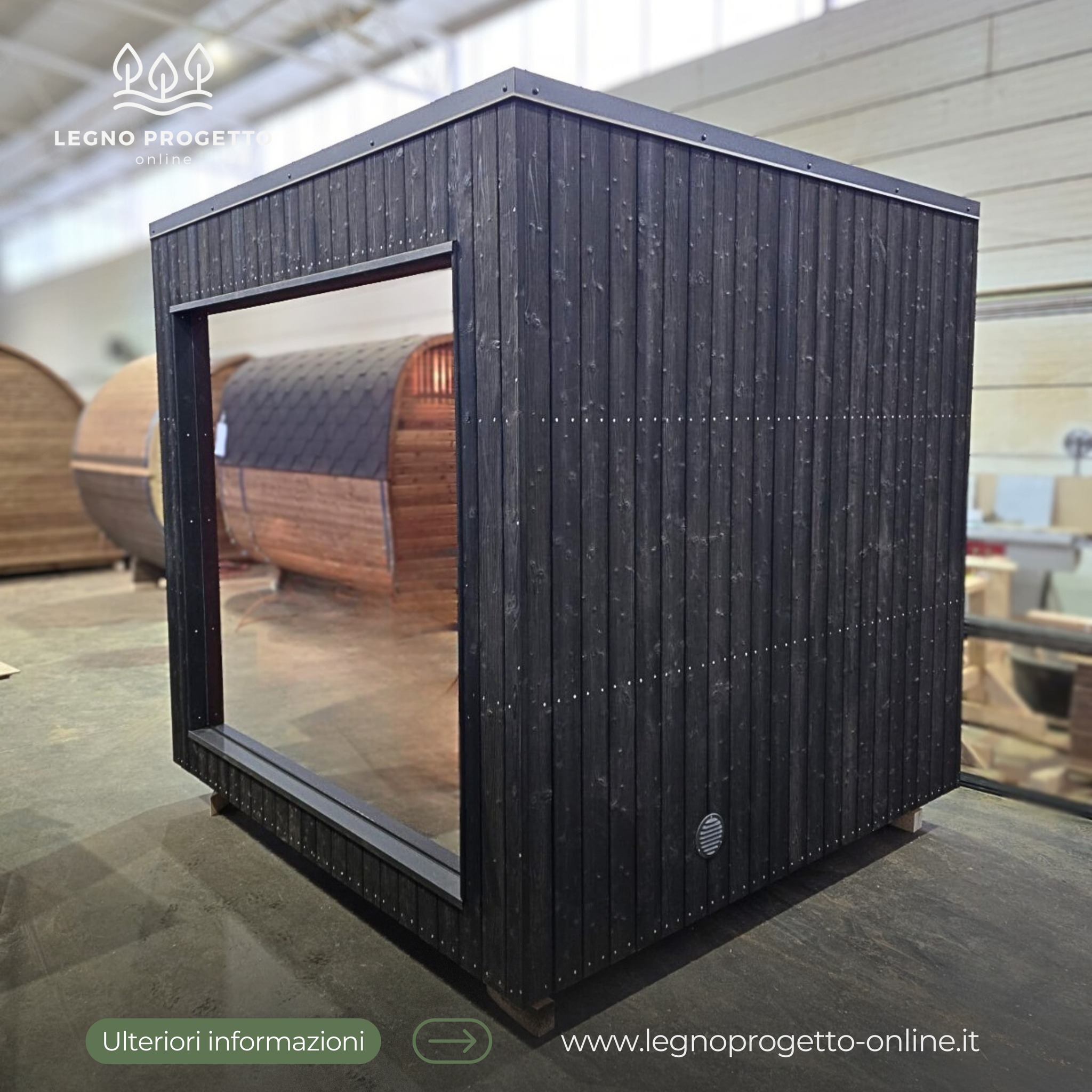La sauna finlandese da esterno con tetto nascosto è un modello moderno e minimalista, progettato per offrire massima efficienza termica, design elegante e utilizzo confortevole durante tutto l’anno.