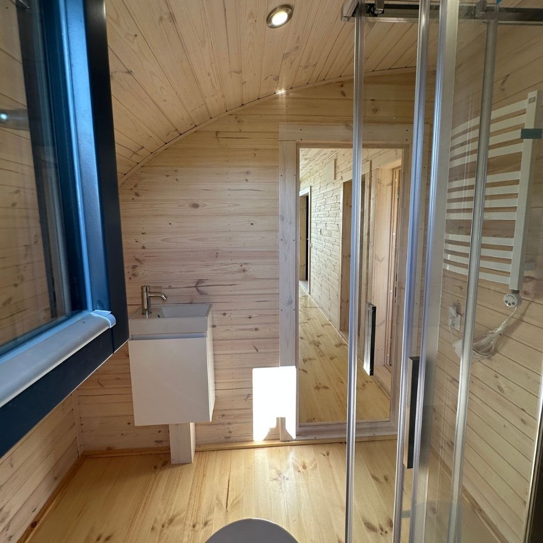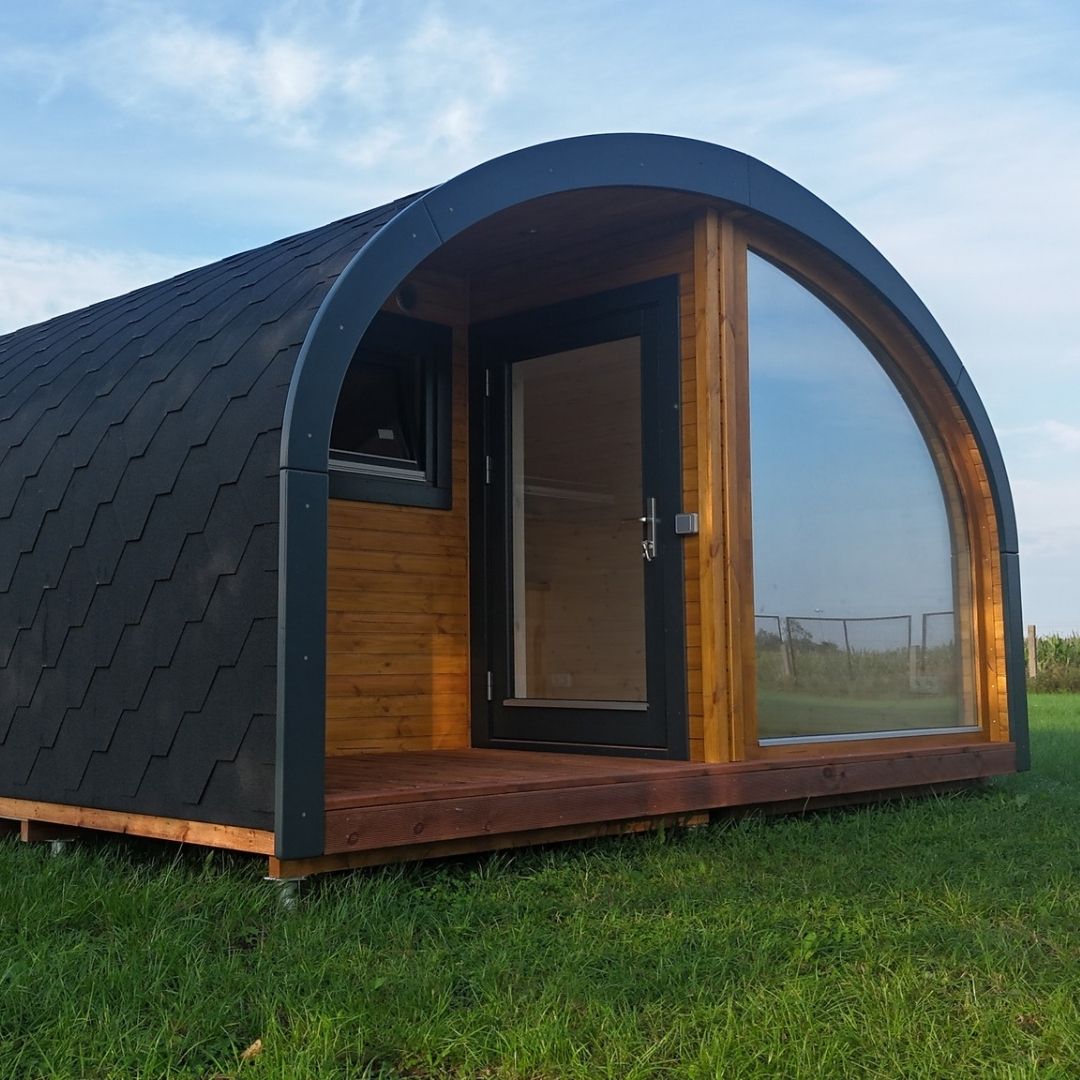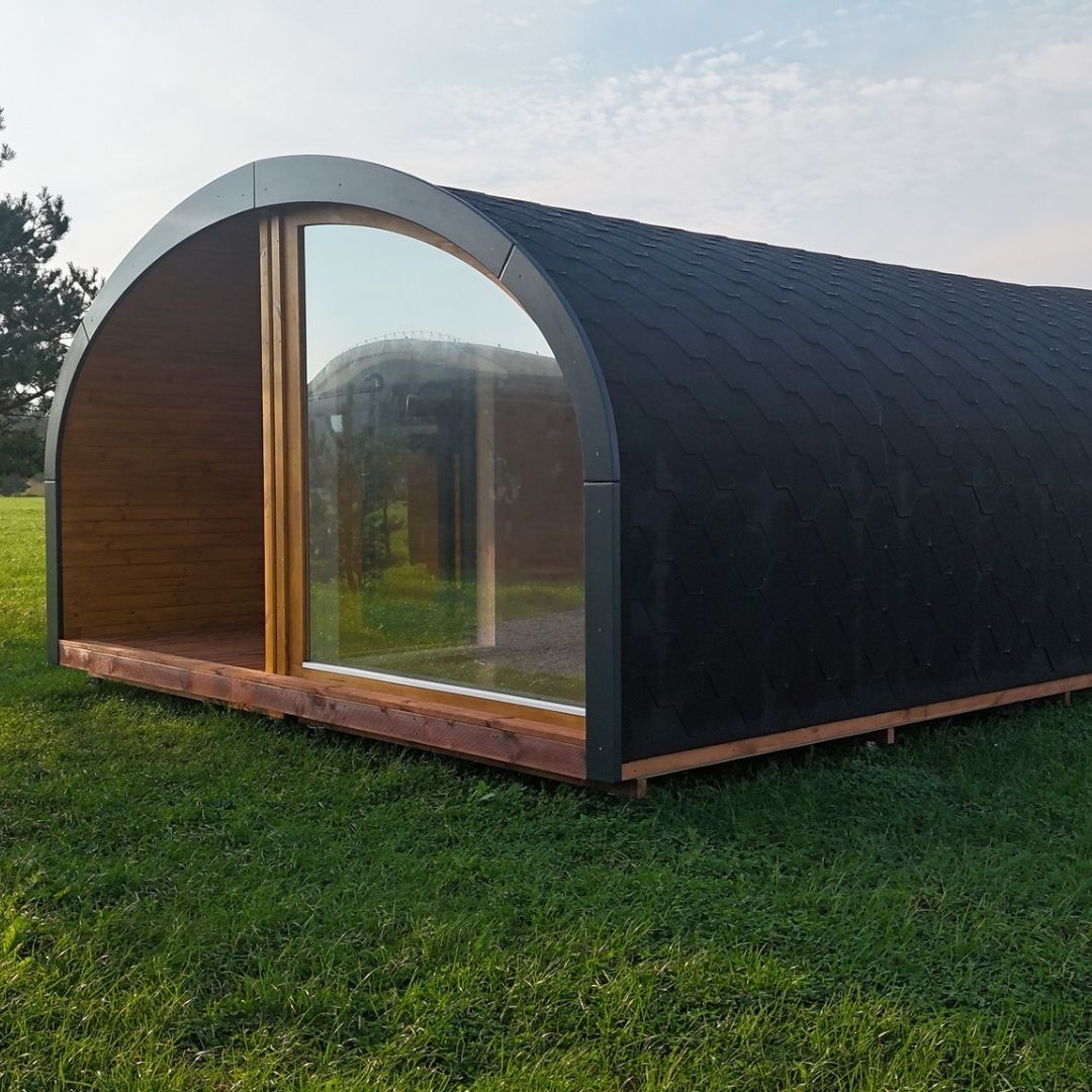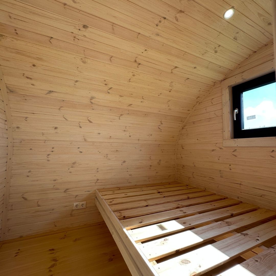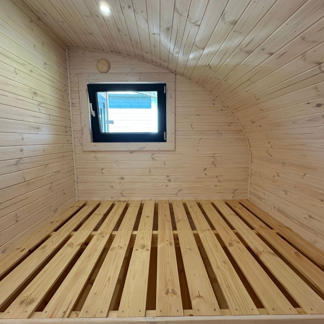 Il Pod Lux si distingue per la sua flessibilità: l’interno open space può essere arredato e configurato liberamente, con la possibilità di aggiungere pareti divisorie, zona notte, cucina compatta o area living. Tra gli optional più richiesti troviamo la facciata panoramica in vetro, disponibile su richiesta, che trasforma il Pod in una suite glamping di lusso con vista mozzafiato. È possibile integrare anche un bagno completo (WC, doccia, lavabo e termoarredo), impianto elettrico, aria condizionata o riscaldamento, oltre a letti, tavoli, mensole e complementi d’arredo in legno.