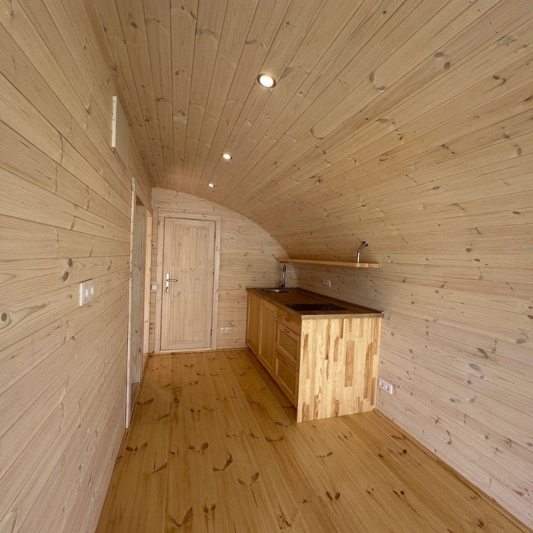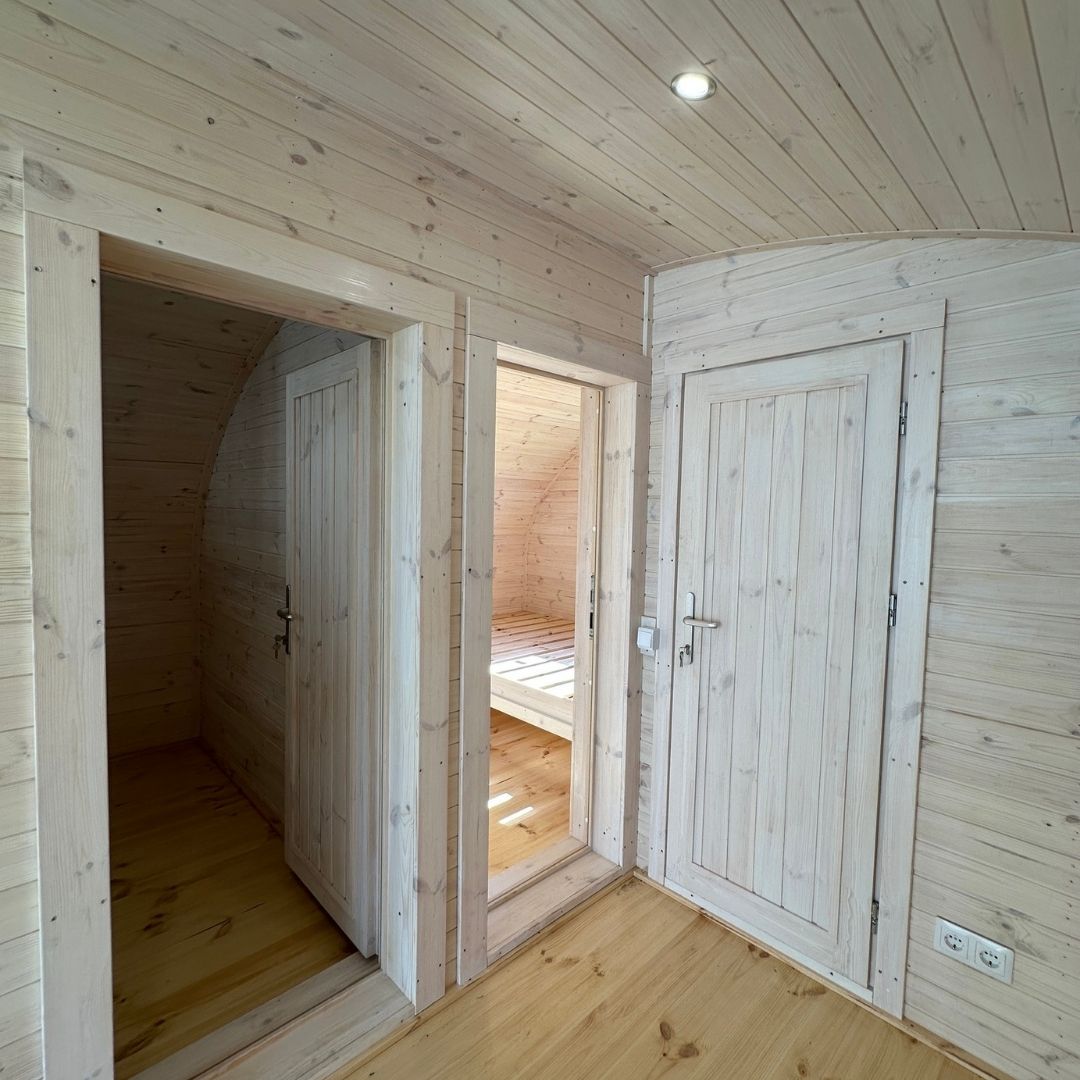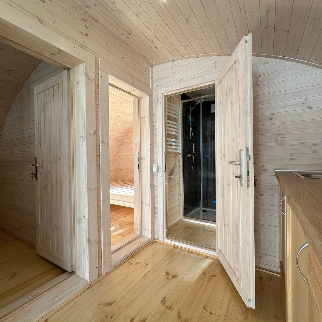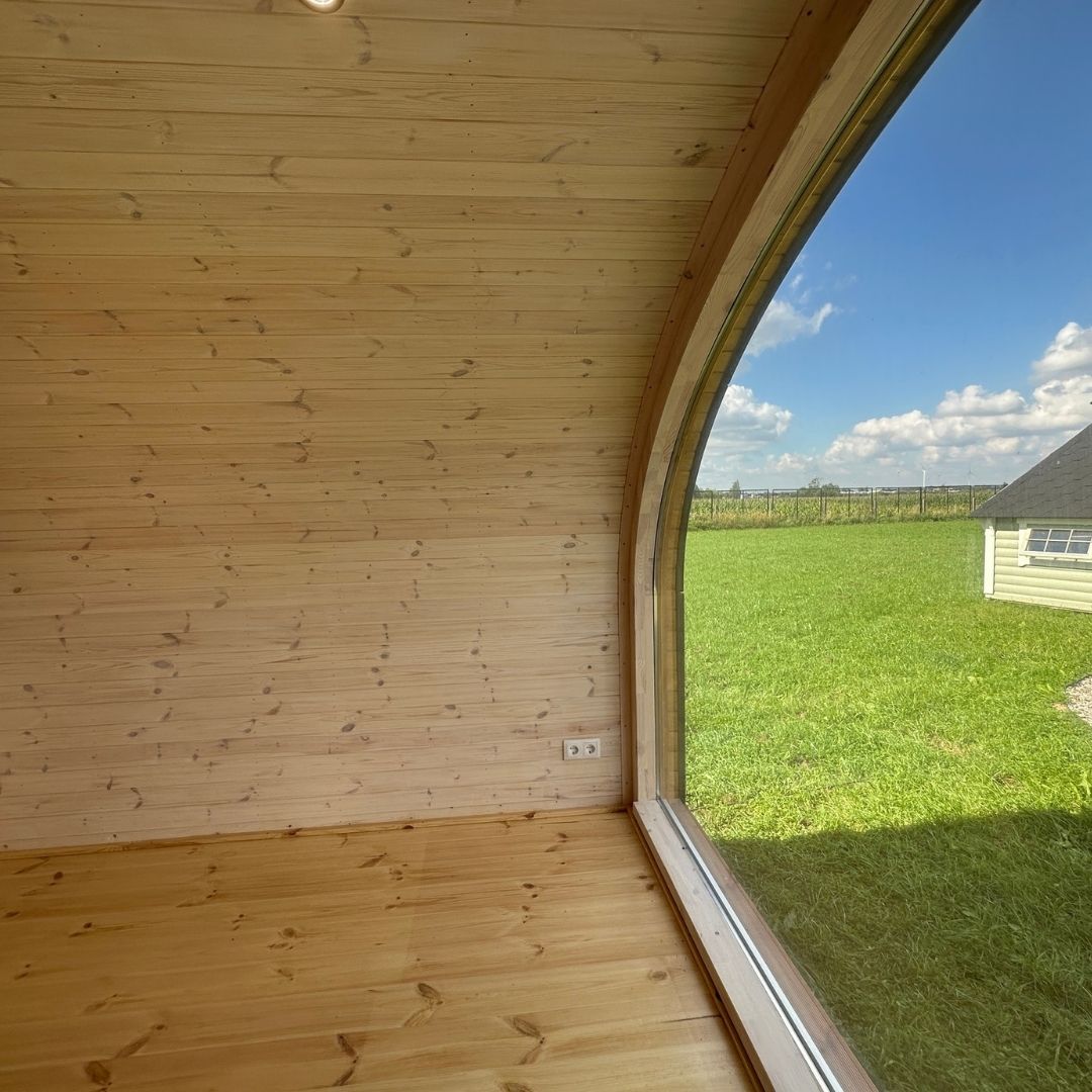 Il Pod Lux si distingue per la sua flessibilità: l’interno open space può essere arredato e configurato liberamente, con la possibilità di aggiungere pareti divisorie, zona notte, cucina compatta o area living. Tra gli optional più richiesti troviamo la facciata panoramica in vetro, disponibile su richiesta, che trasforma il Pod in una suite glamping di lusso con vista mozzafiato. È possibile integrare anche un bagno completo (WC, doccia, lavabo e termoarredo), impianto elettrico, aria condizionata o riscaldamento, oltre a letti, tavoli, mensole e complementi d’arredo in legno.