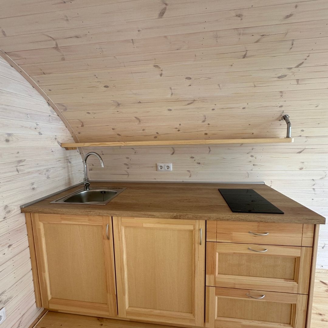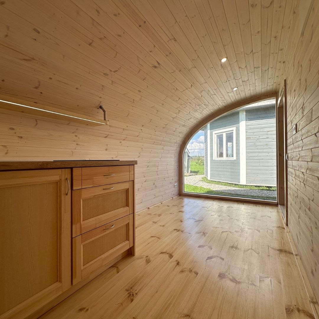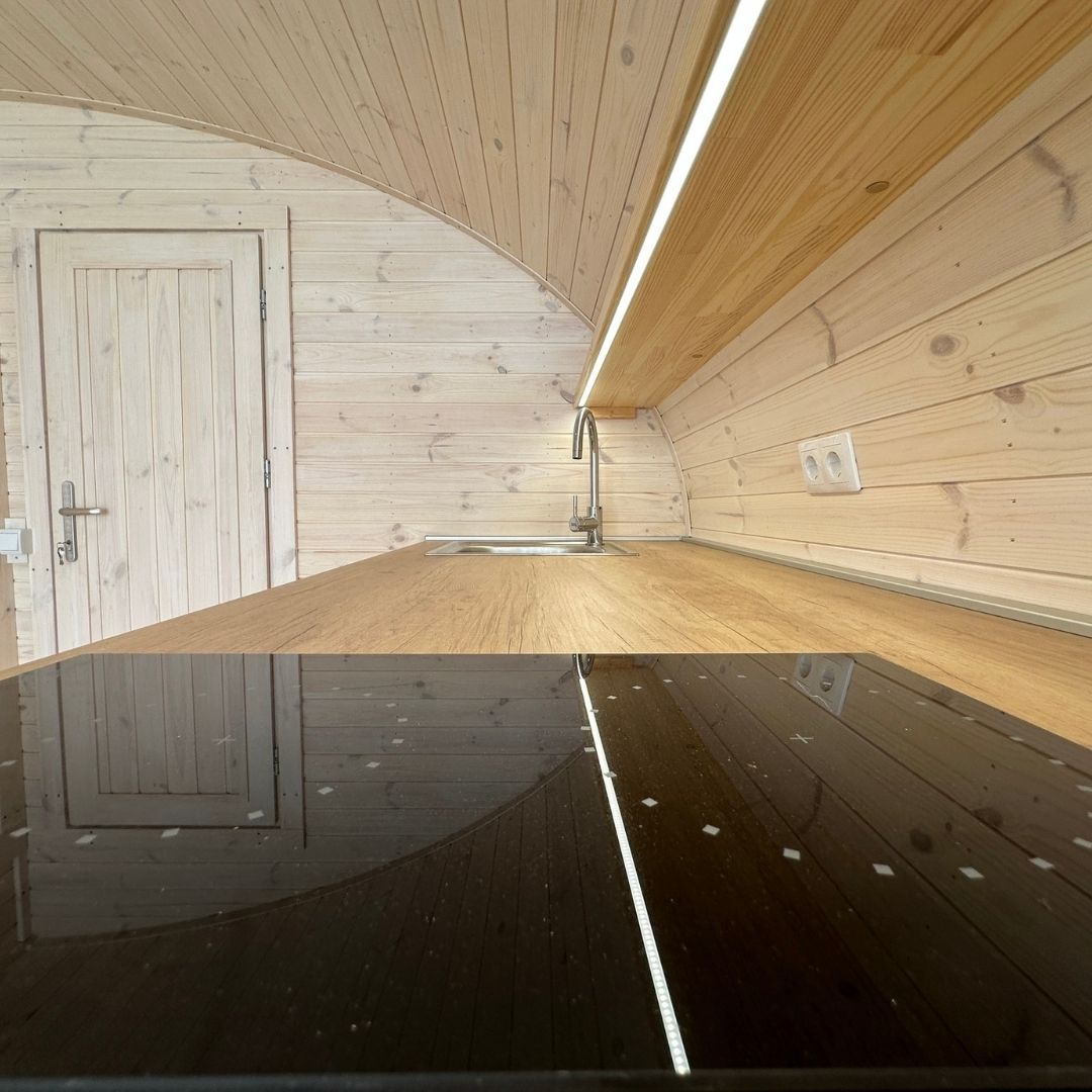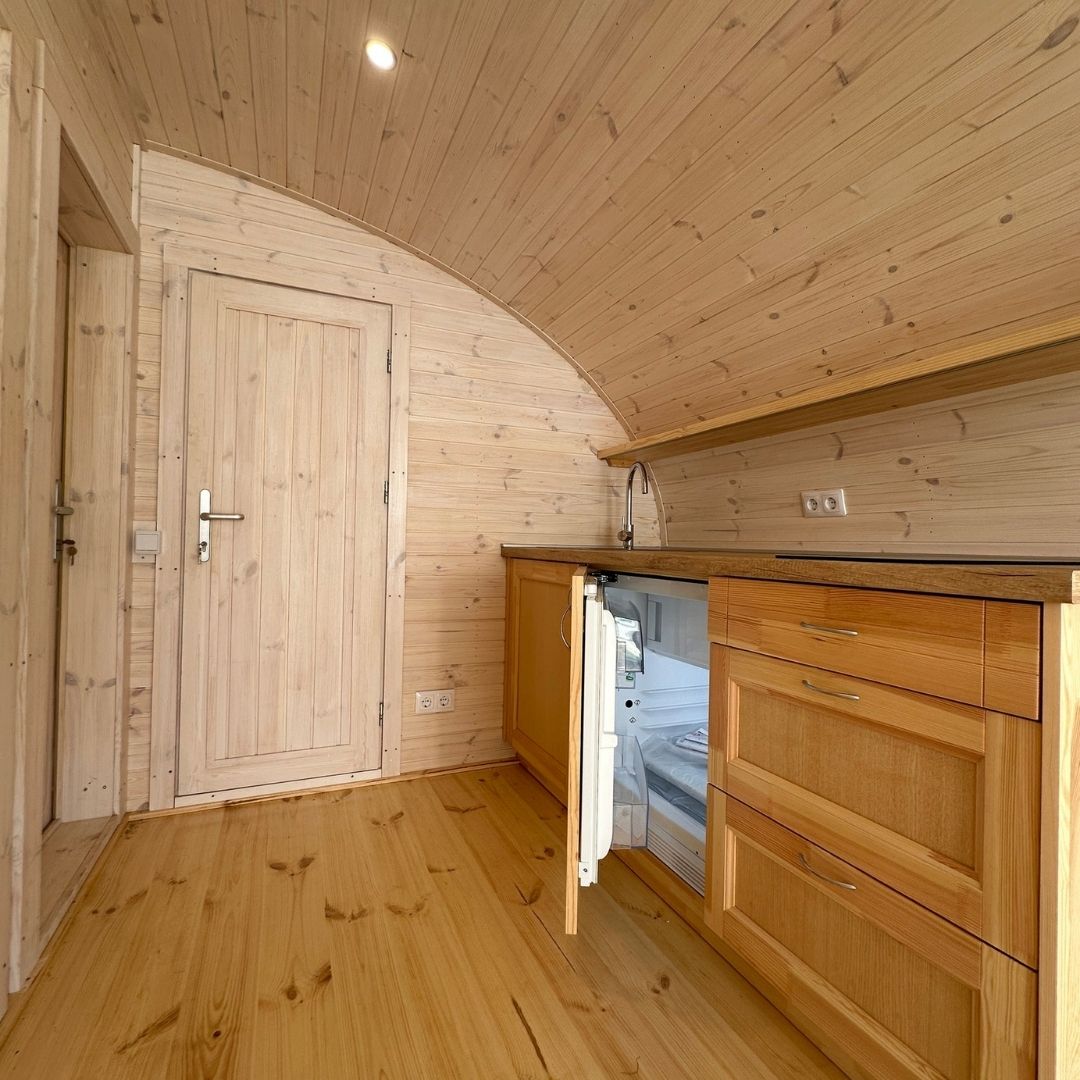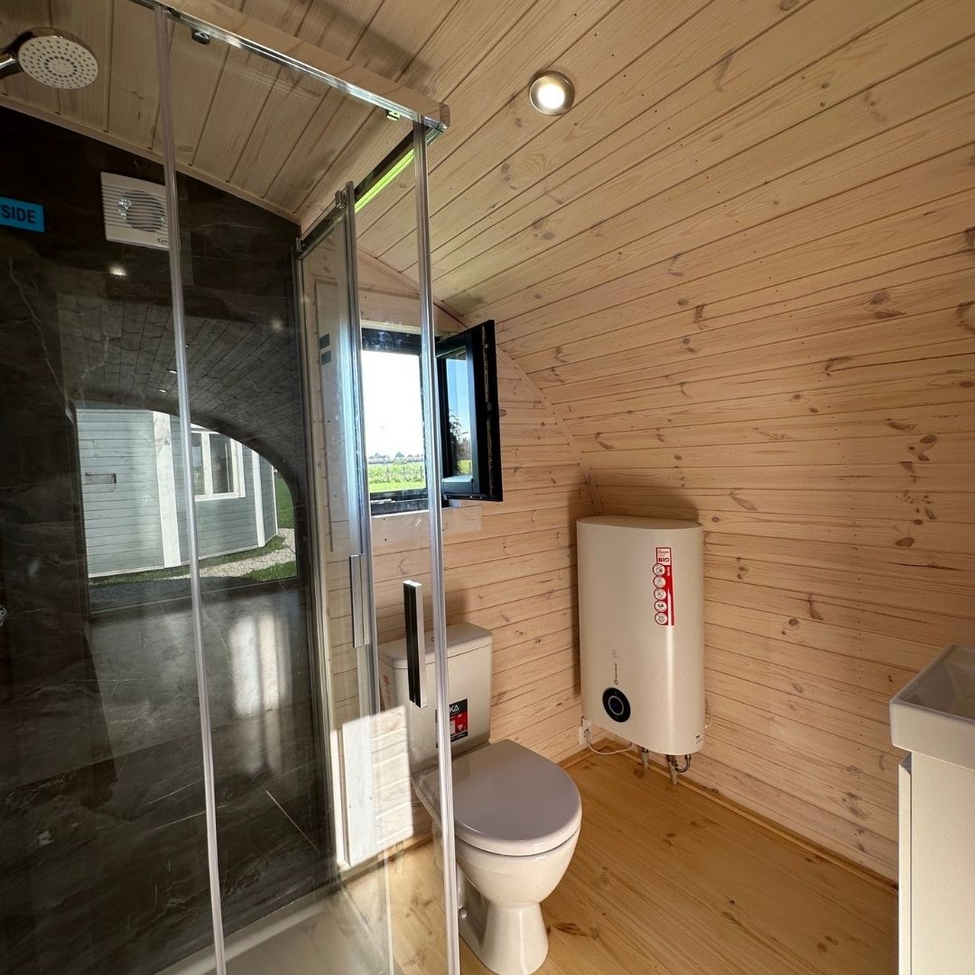 Il Pod Lux si distingue per la sua flessibilità: l’interno open space può essere arredato e configurato liberamente, con la possibilità di aggiungere pareti divisorie, zona notte, cucina compatta o area living. Tra gli optional più richiesti troviamo la facciata panoramica in vetro, disponibile su richiesta, che trasforma il Pod in una suite glamping di lusso con vista mozzafiato. È possibile integrare anche un bagno completo (WC, doccia, lavabo e termoarredo), impianto elettrico, aria condizionata o riscaldamento, oltre a letti, tavoli, mensole e complementi d’arredo in legno.