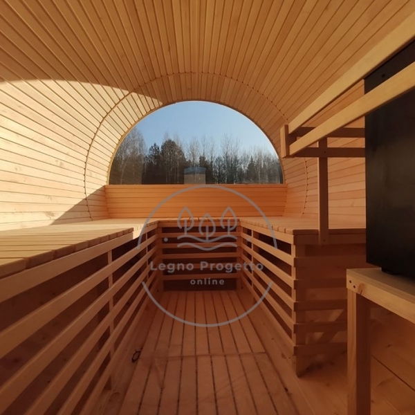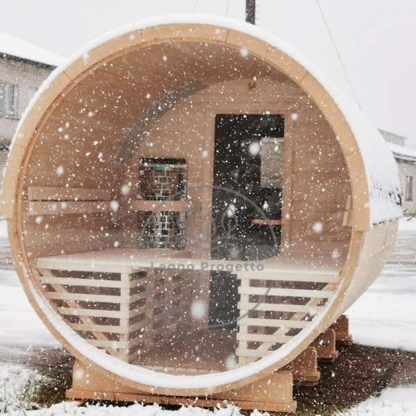 - Sauna a botte in legno di Abete (spessore 43 mm);