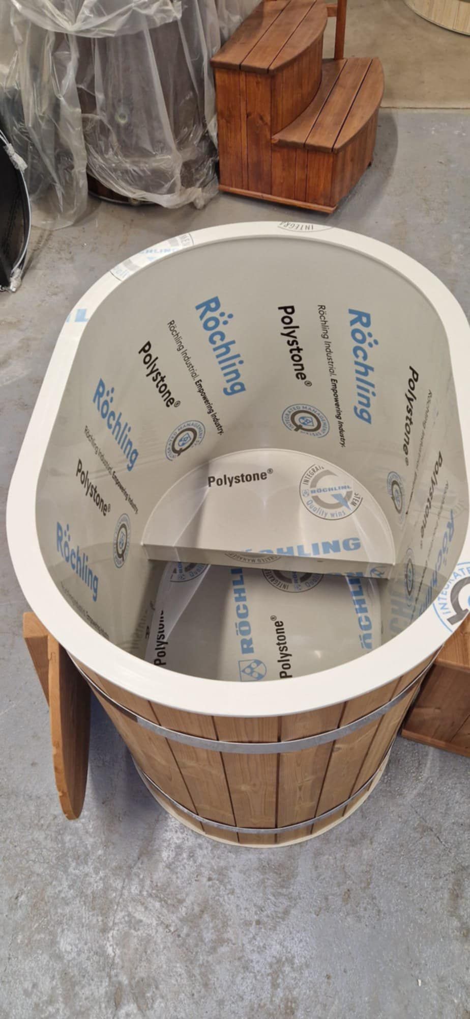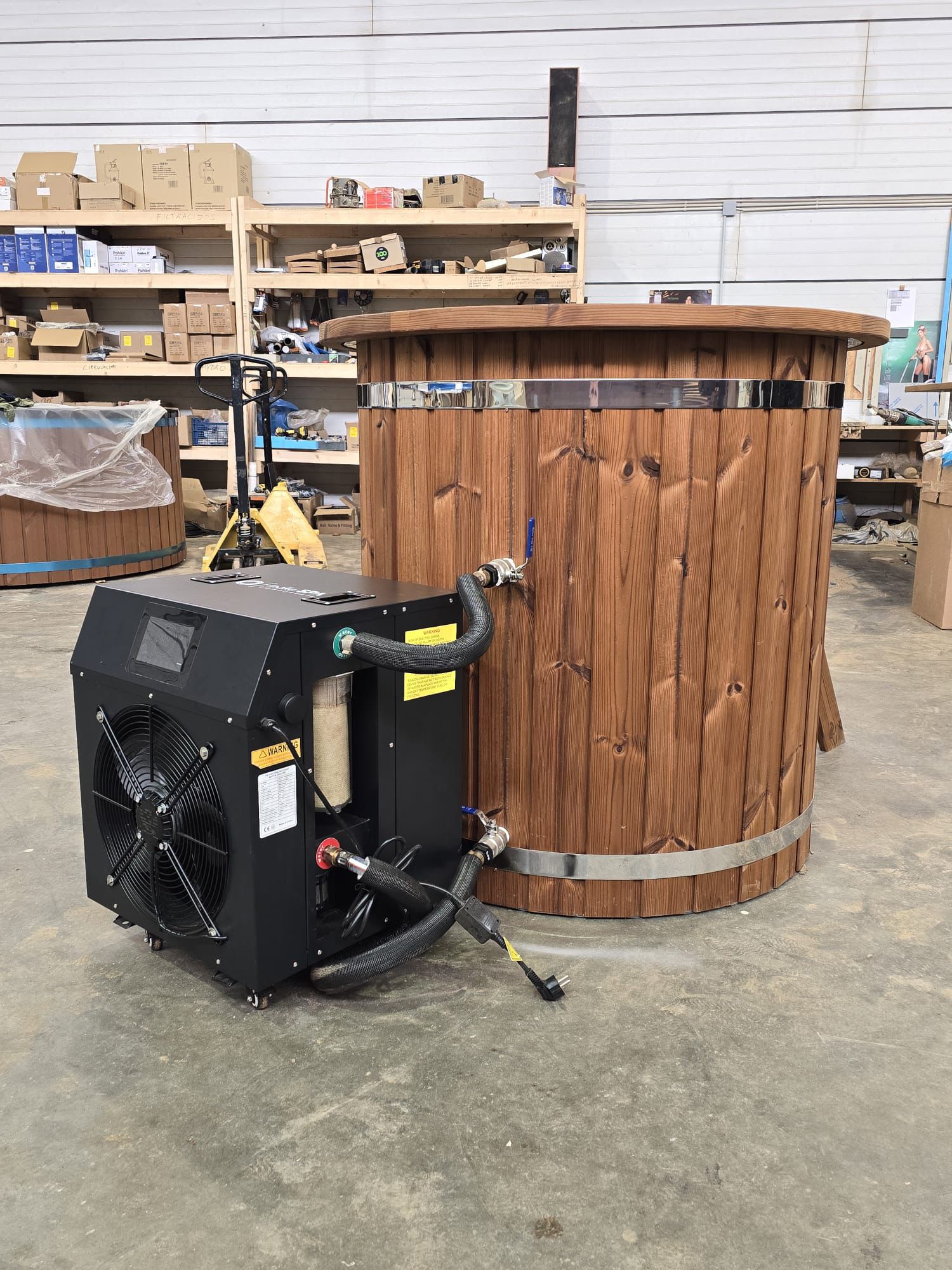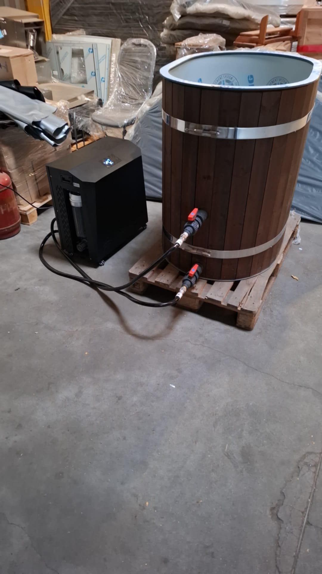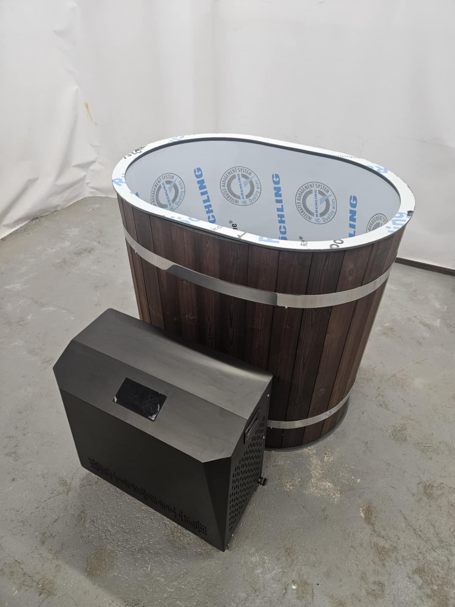 🛁 Mini Vasca Ovale in Plastica PP con Rivestimento in Legno e Sistema di Raffreddamento Ice Chiller QG-50-A 2 HP – La Tua Terapia di Benessere Freddo e Rigenerante