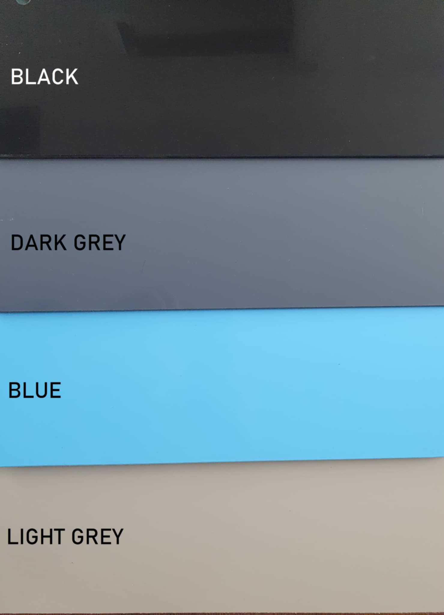 Materiale interno plastica PP, colori disponibili: blu, grigio chiaro, grigio scuro, nero