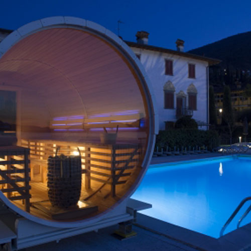 Sauna Barile lunga 5 ø 2,40 m con riscaldatore compreso. Personalizza la tua sauna con gli accessori più adatti a te.