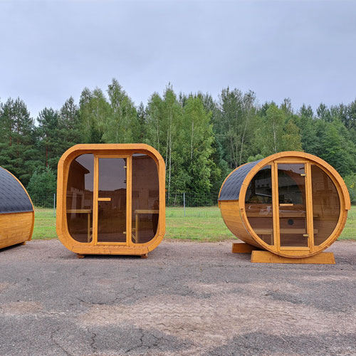 All’aperto, la Sauna da Esterno LUX CUBE in abete o termo-legno massello è disponibile in diverse misure per soddisfare ogni esigenza.