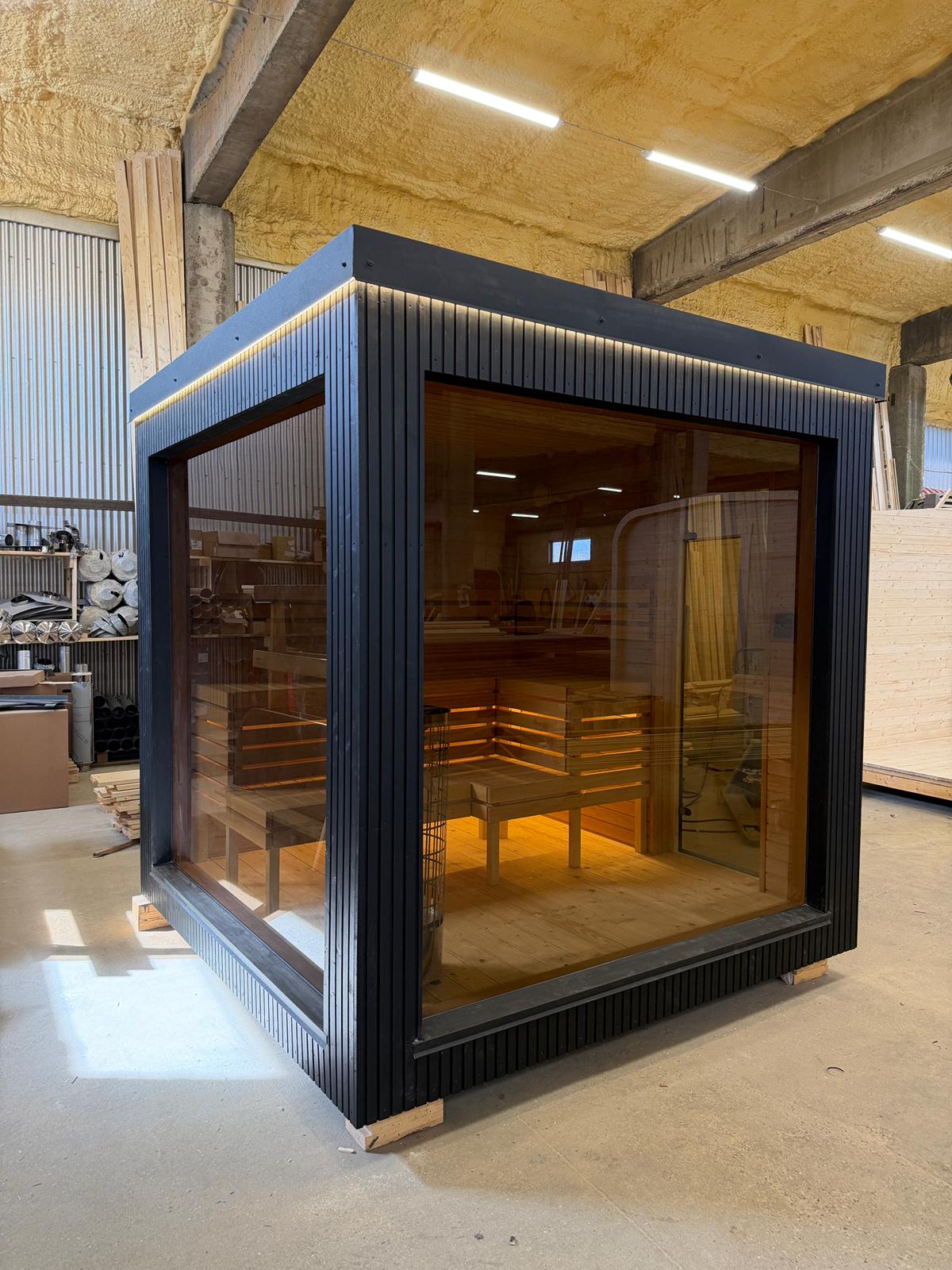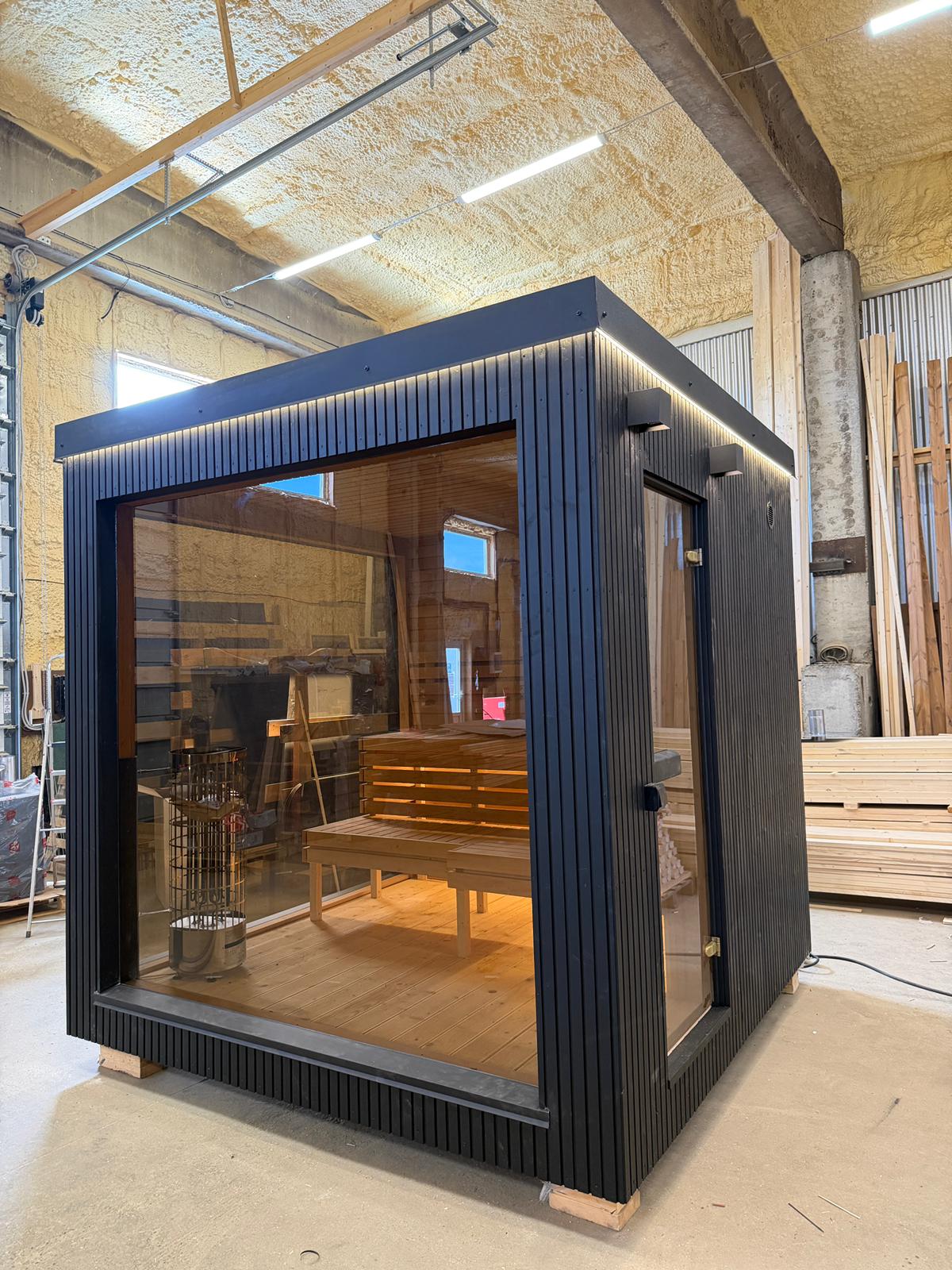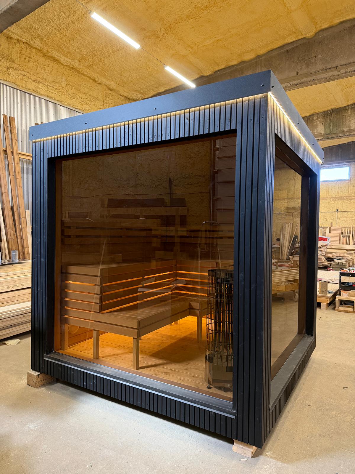 Aroma di Benessere: Sauna Frame Finlandese da Esterno – Modello Moderno e Minimalista con Struttura Isolata 245×245 cm e Stufa Harvia
