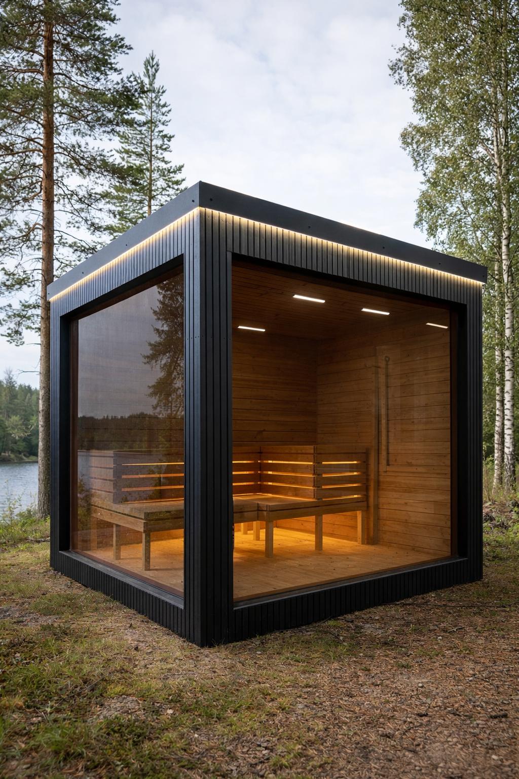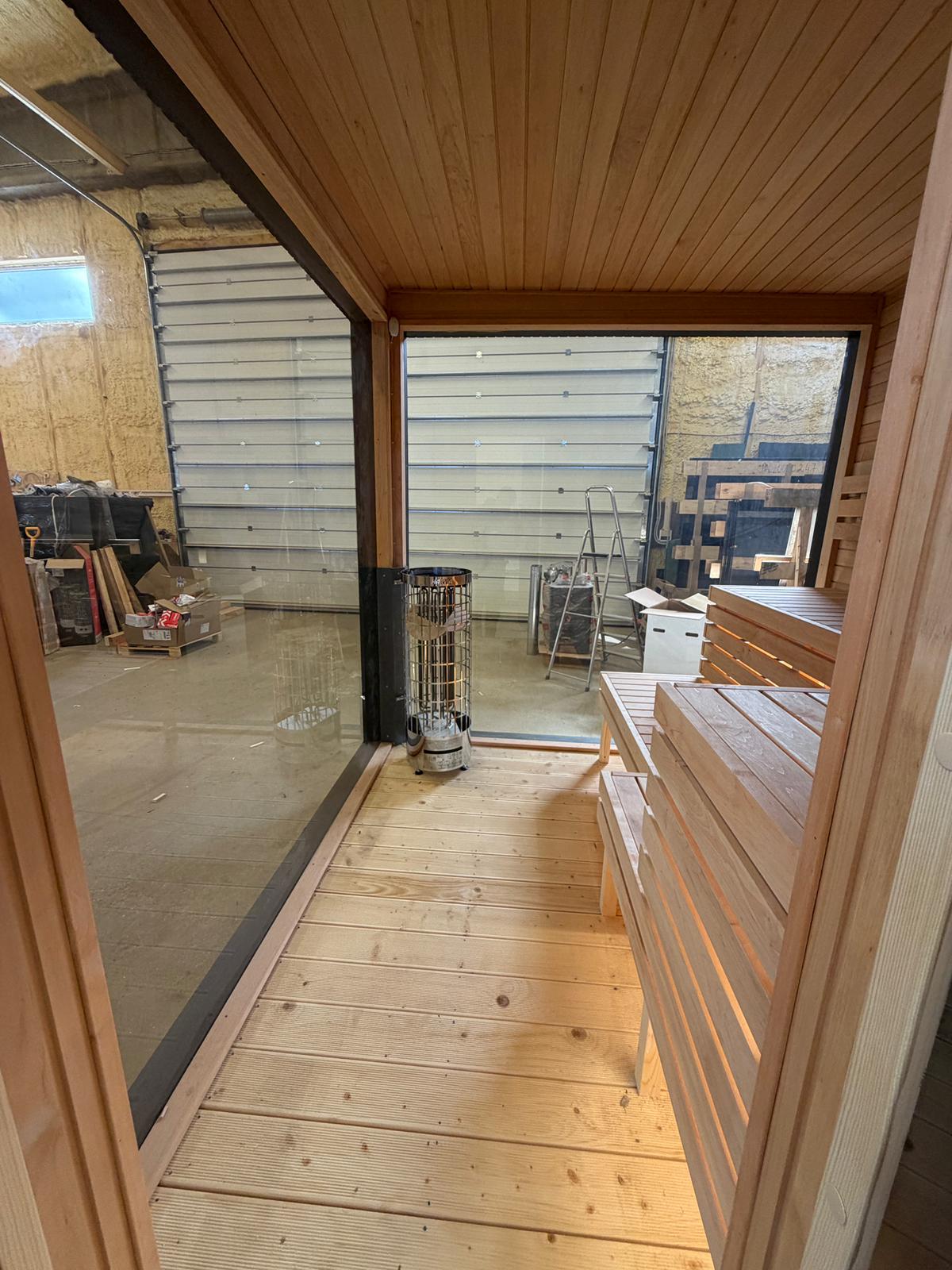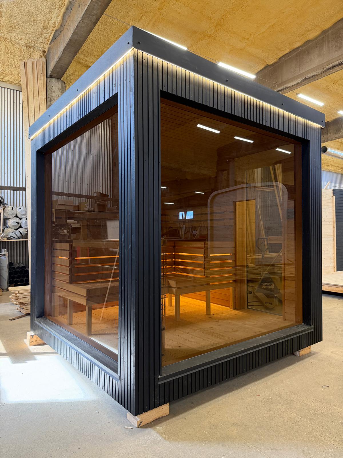 Aroma di Benessere: Sauna Frame Finlandese da Esterno – Modello Moderno e Minimalista con Struttura Isolata 245×245 cm e Stufa Harvia